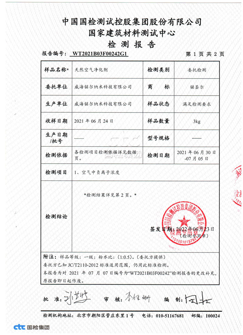 負氧離子被譽為空氣中的維生素,通常一個人每天需要130億個負氧離子,而正常空氣中只能提供不到20億個負氧離子,公司生產的天然涂料粉添加在乳膠漆或者膩子粉當中形成天然氧吧臥室每立方厘米靜態可以產生1千至幾萬個負氧離子。